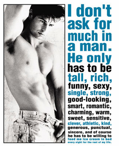 Women love to be asked about what they look for in a man. It’s kind of like imagining what you’ll do with all your lottery winnings after you buy a quick-pick – you want the mansion and the yacht, but you’ll also give some to charity so as not to seem like money could fundamentally change you into a greedy prick. Women rationalize that their most self-indulgent wants need to be tempered with some measured appearance of prudence. This is a kind of meta scale anti-slut defense. However, while ASD is a localized private dynamic, on a socialized, public scale this translates into women presenting a perception of judiciousness in explaining what they find attractive in a man, without being burdened with the perception of ‘shallowness’ for what they find arousing in a man.